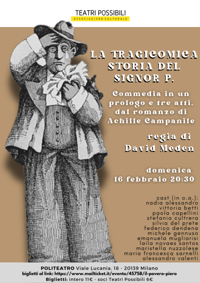 “𝗟𝗮 𝘁𝗿𝗮𝗴𝗶𝗰𝗼𝗺𝗶𝗰𝗮 𝘀𝘁𝗼𝗿𝗶𝗮 𝗱𝗲𝗹 𝘀𝗶𝗴𝗻𝗼𝗿 𝗣.”, un adattamento dal romanzo di Achille Campanile – “Povero Piero”.