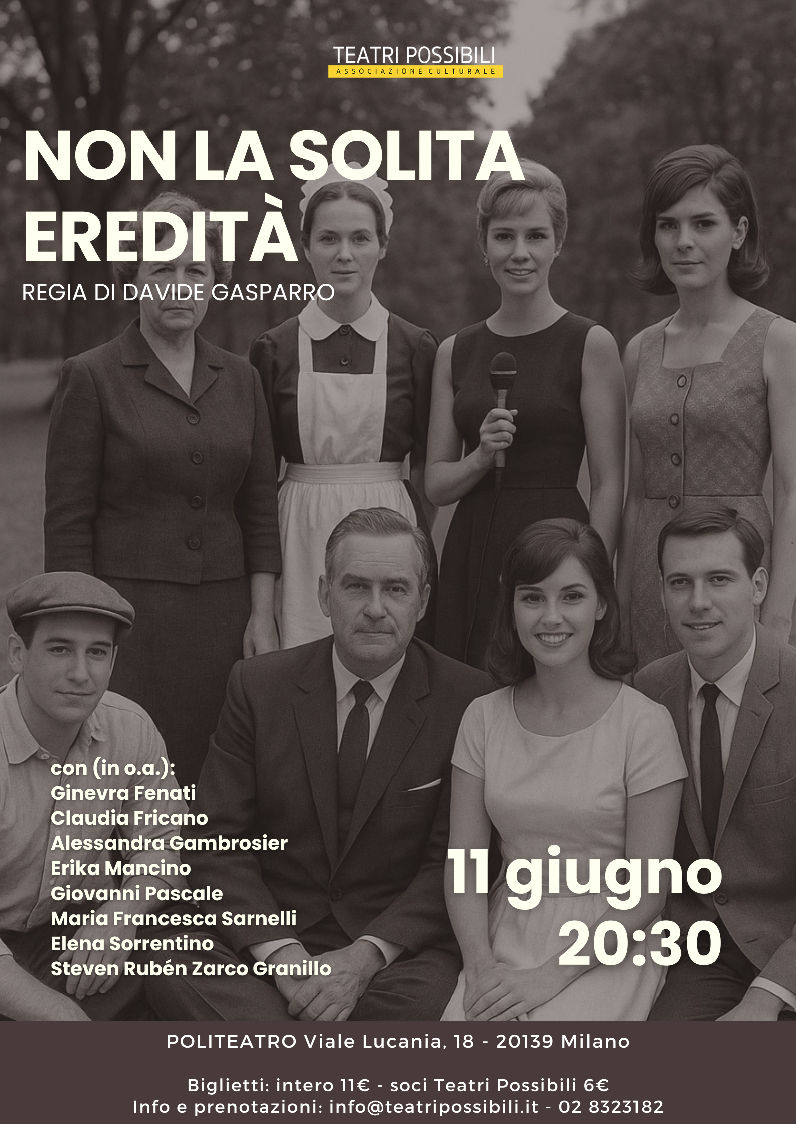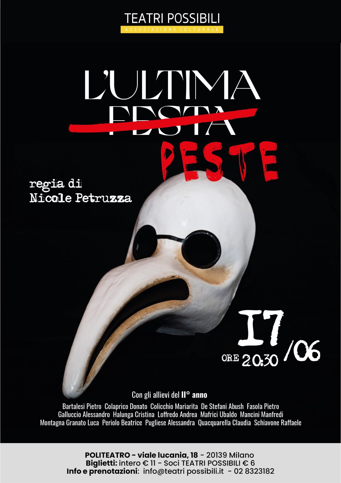 Intero a 11€ o ridotto a 6€ (soci Teatri Possibili e bambini sotto i 10 anni)