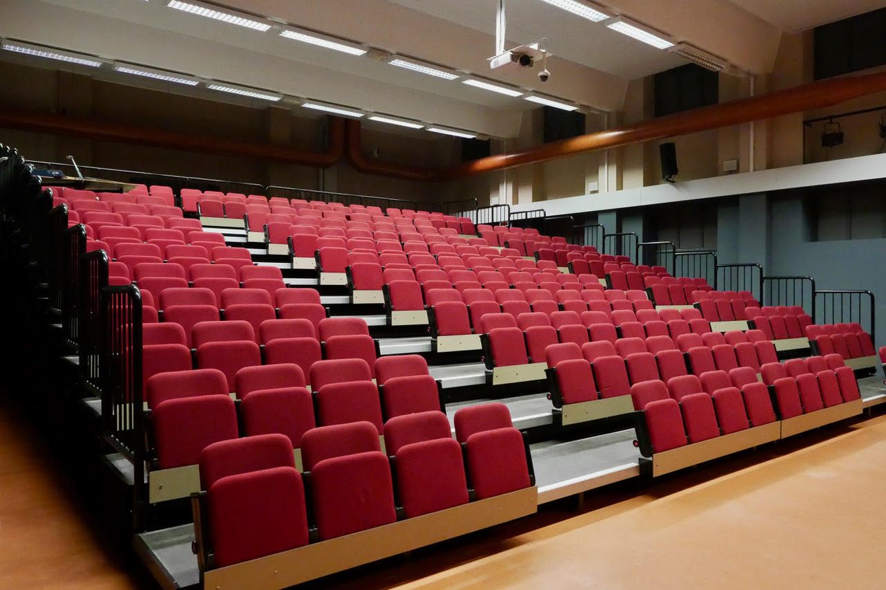 Con un palcoscenico di 70 m², il teatro è dotato di attrezzature di ultima generazione: uno schermo motorizzato per proiezioni, un videoproiettore avanzato e un sistema audio e luci personalizzabile per ogni evento.